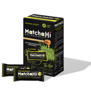 MatchaMi- matcha japoneză BIO ( 10%) cu miere românească, un mod de consum la îndemână, dacă ești la birou, la sport, în excursii sau în alergare.
