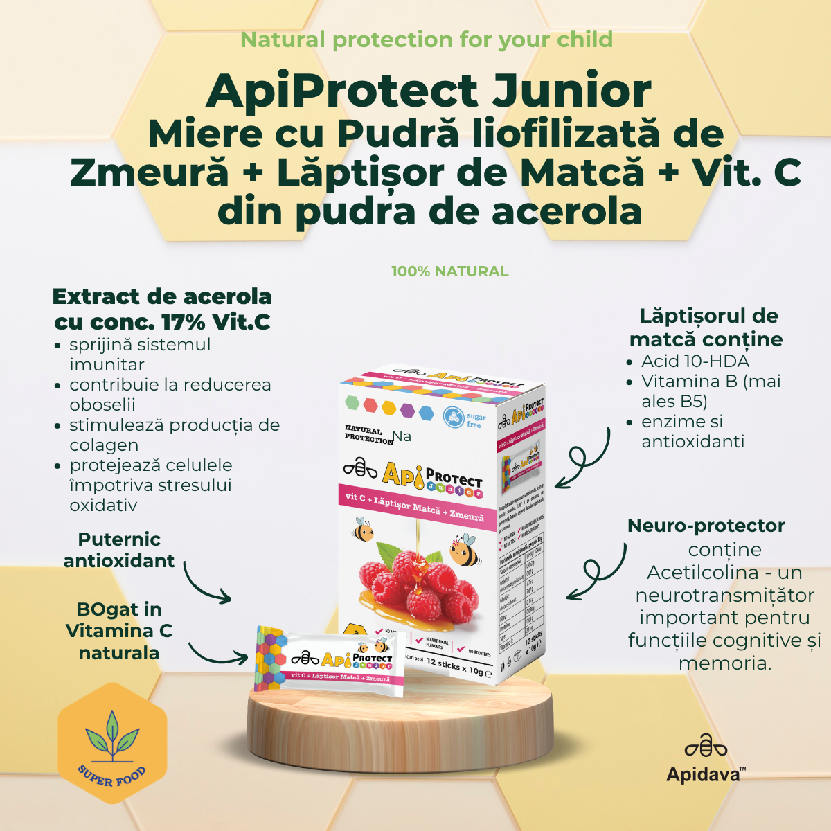 ApiProtect Junior Miere cu Zmeură + Lăptișor de Matcă + Vit. C 10 BUC x 10 GR.