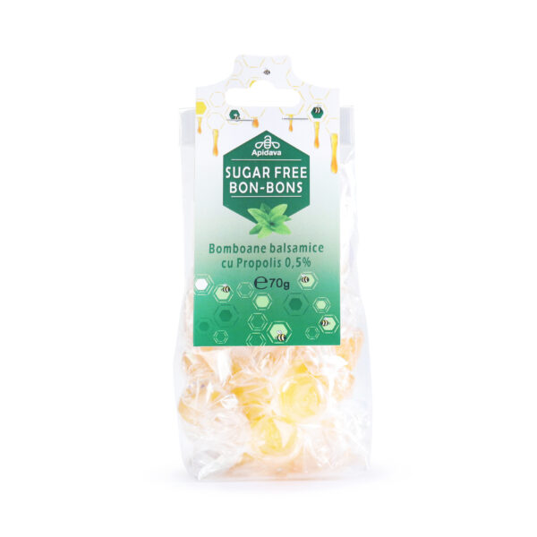 Bomboanele balsamice cu propolis în concentratie de 0,5% îmbină perfect aroma și beneficiile produselor apicole cu uleiul esential de Eucalipt, care ajutã căile respiratorii.