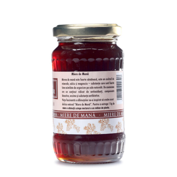 Mierea de mană, denumita de multe ori si miere de padure, este un sortiment de miere special, prin insasi sursa acesteia: secretia unor afide sau secretiile dulci ale arborilor. Fiind o miere rara; deosebit de greu de produs si extras; culeasa doar in anumite conditii de pe speciile de arbori, este si una din cele mai curate tipuri de miere, datorita zonelor acoperite de padure de unde provine (paduri de stejar; fag; rasinoase; etc).