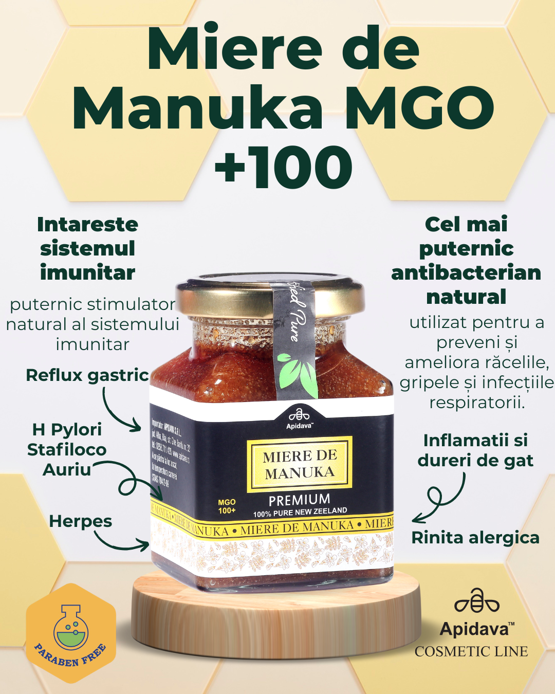 Este un puternic sustinator al sistemului imunitar al copiilor cu varsta peste 1 an sau al adultilor. Aceste produse ajuta la cresterea imunitatii rapid. Se ia pe toata perioada sezonului rece, zilnic,o lingurita, in fiecare an sau pe toata perioada anului, in fiecare zi, oricum doriti, pentru cresterea nivelului antibacterian si implicit optimizarea sistemului imunitar; Beneficiile consumului de miere de Manuka se observa in timp; Pe cat posibil, mierea de Manuka se ia cu minim 5-10 minute inainte de mese si lichide;