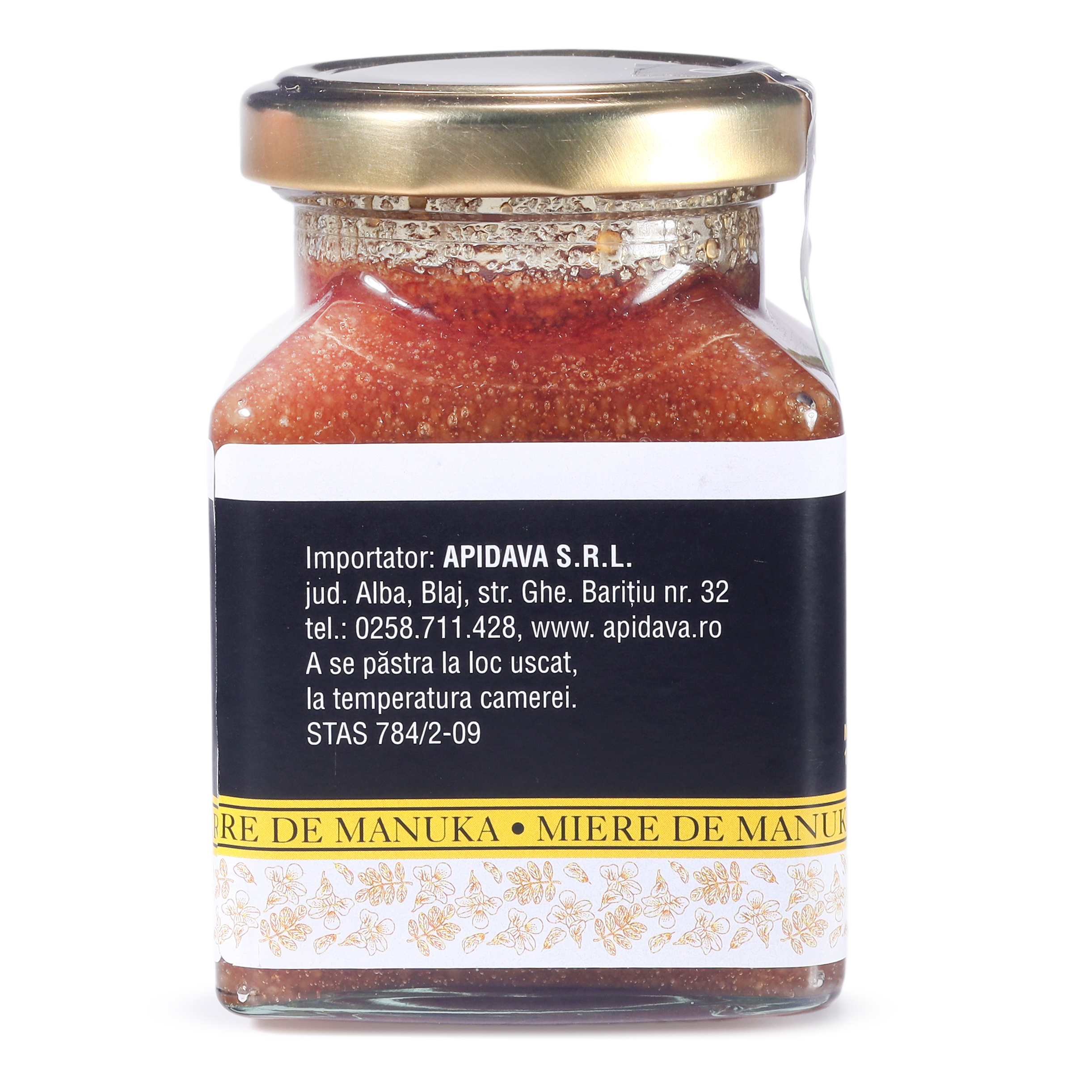 Manuka are o aromă placută și este dulce în mod natural. În plus, conține metilglioxal (MGO), un compus natural puternic antibacterian găsit de albine în concentrația nectarului din floare de Manuka. MGO este factorul unic al mierii de Manuka, care are rolul de a indica puterea antibacteriană a acestui produs apicol). Cu cât concentrația de MGO este mai mare, cu atât este mai puternic efectul antibiotic al mierii.