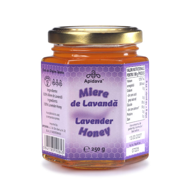 Mierea de lavandă are un gust aparte și o aromă fină care păstrează calitățile florii de lavandă. Concentrația de polen de lavandă este redusă; de 15-20%; ph-ul este scăzut și aciditatea relativ mare; fiind considerată o miere de calitate superioară.