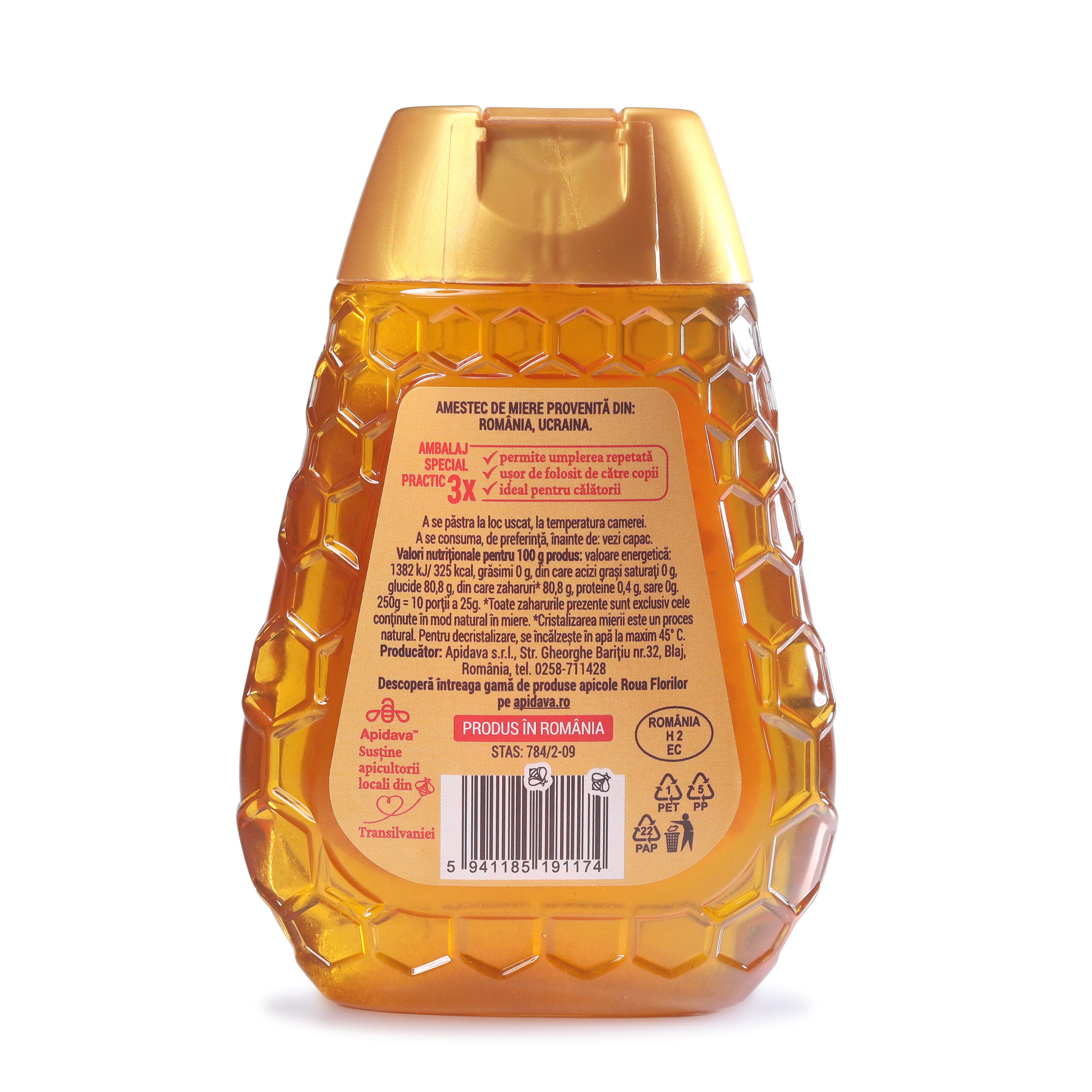Savoarea și gustul fin al nectarului din florile mai multor specii de plante care înfloresc simultan se regăsesc cu prisosință în mierea poliflora atent selecționată.