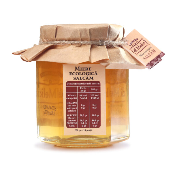 Mierea de SALCÂM ECOLOGICĂ provine din pădurile de salcâm din Podişul Transilvaniei. Este uşor de recunoscut; având o culoare alb-gălbuie; extrem de frumoasă; strălucitoare şi translucidă. Are un miros mai puţin persistent; denotând aceeaşi eleganţă şi rafinament ca şi floarea de salcâm.