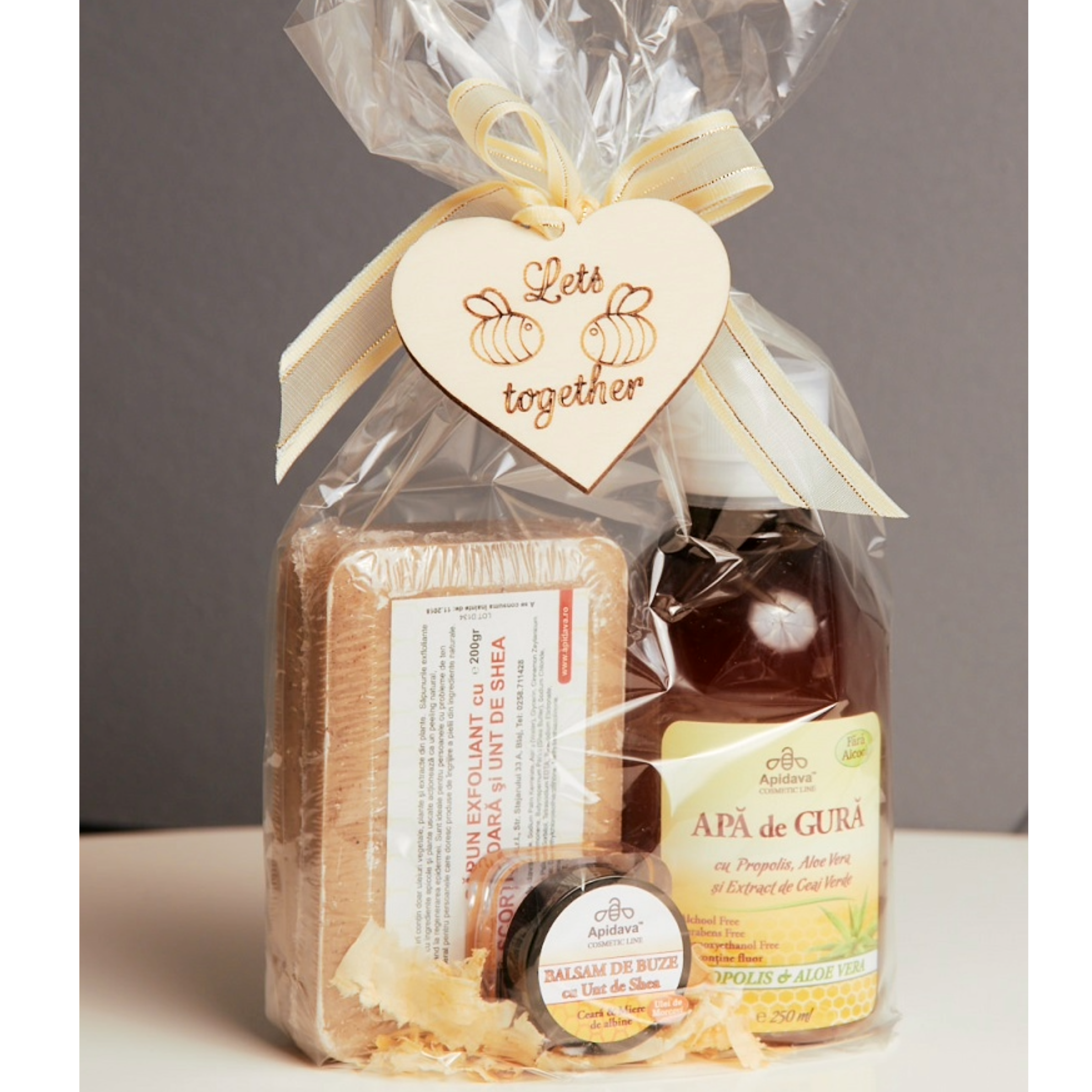 Set cadou ApiCosmetic Apă de gură, Balsam buze, Săpun exfoliant